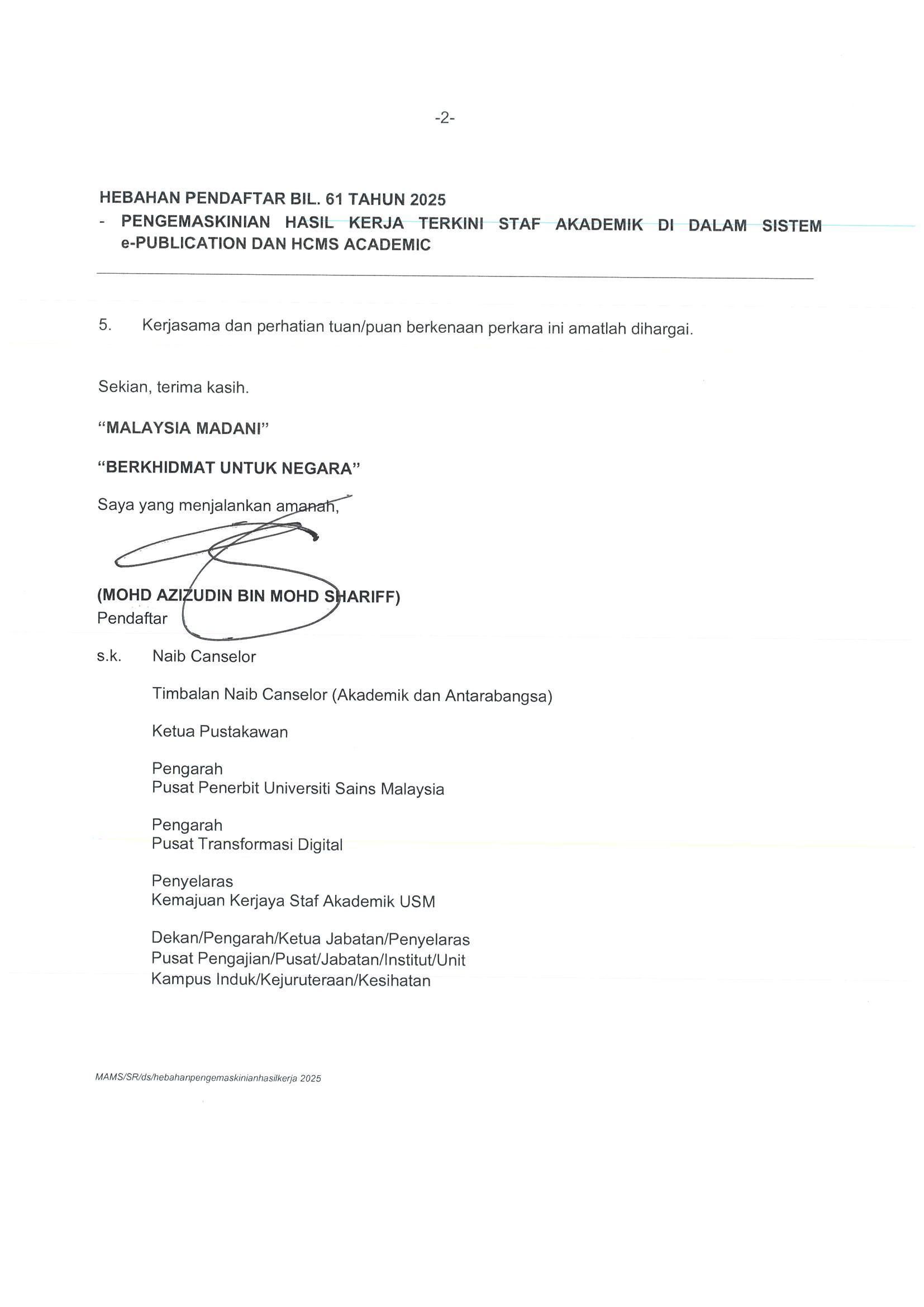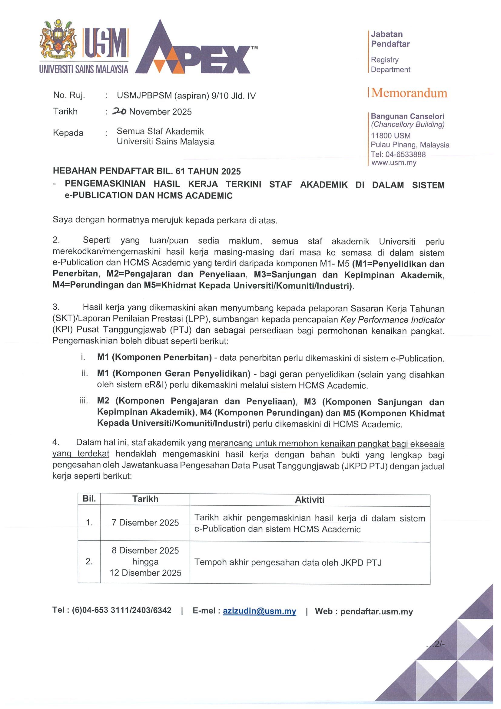 HEBAHAN PENDAFTAR BIL. 61 TAHUN 2025 - PENGEMASKINIAN HASIL KERJA TERKINI STAF AKADEMIK DI DALAM SISTEM e-PUBLICATION DAN HCMS ACADEMIC