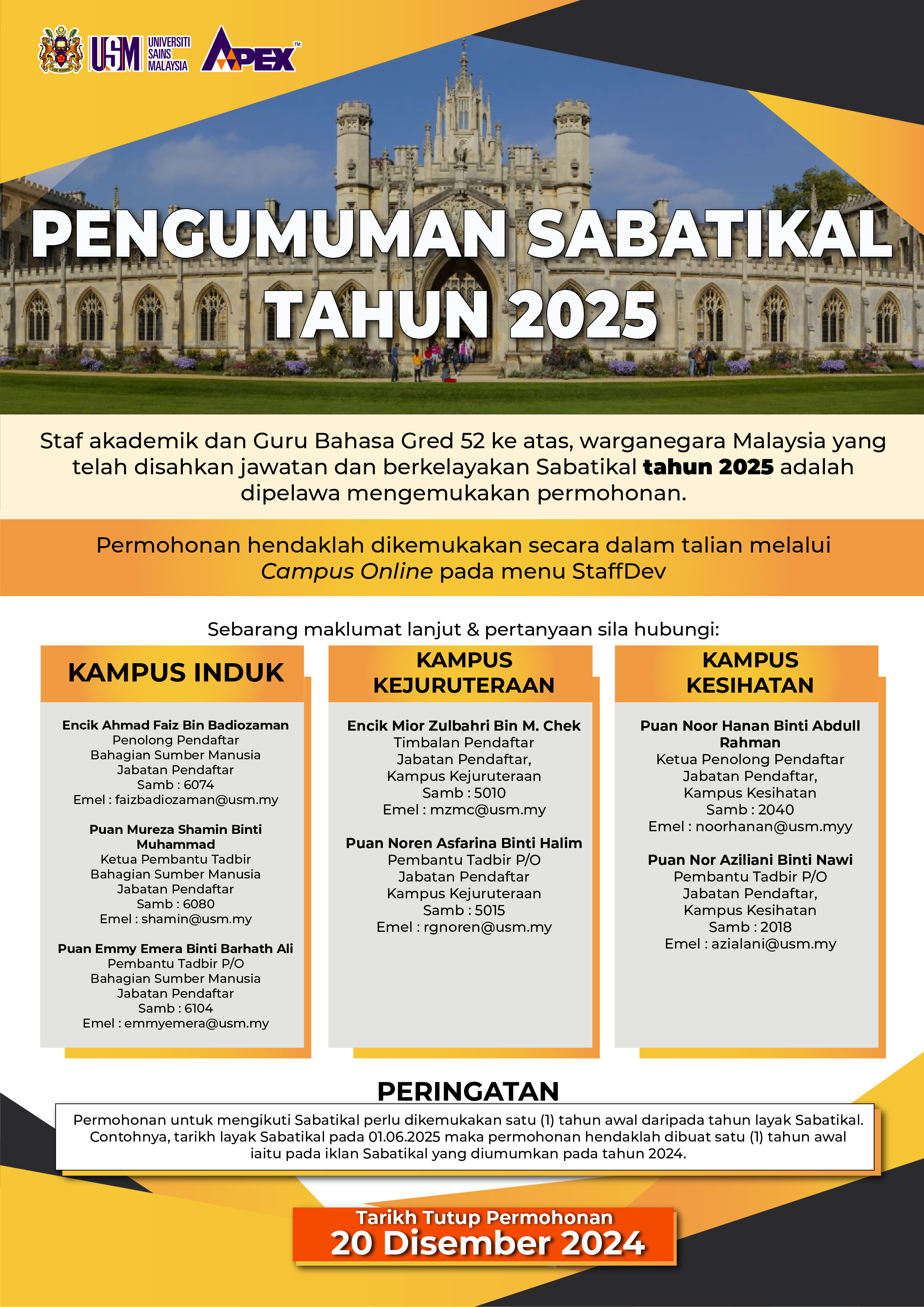 HEBAHAN PENDAFTAR BIL. 70 TAHUN 2024 : PENGUMUMAN PERMOHONAN SABATIKAL TAHUN 2025