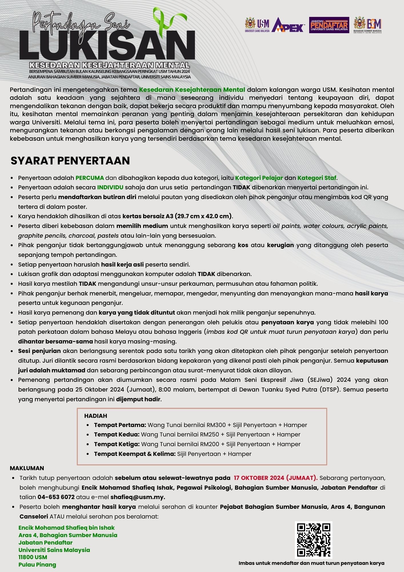 Syarat Pertandingan Seni Lukisan & Mencipta Poster Digital Seni Ekspresif Jiwa (SEJiwa) USM 2024