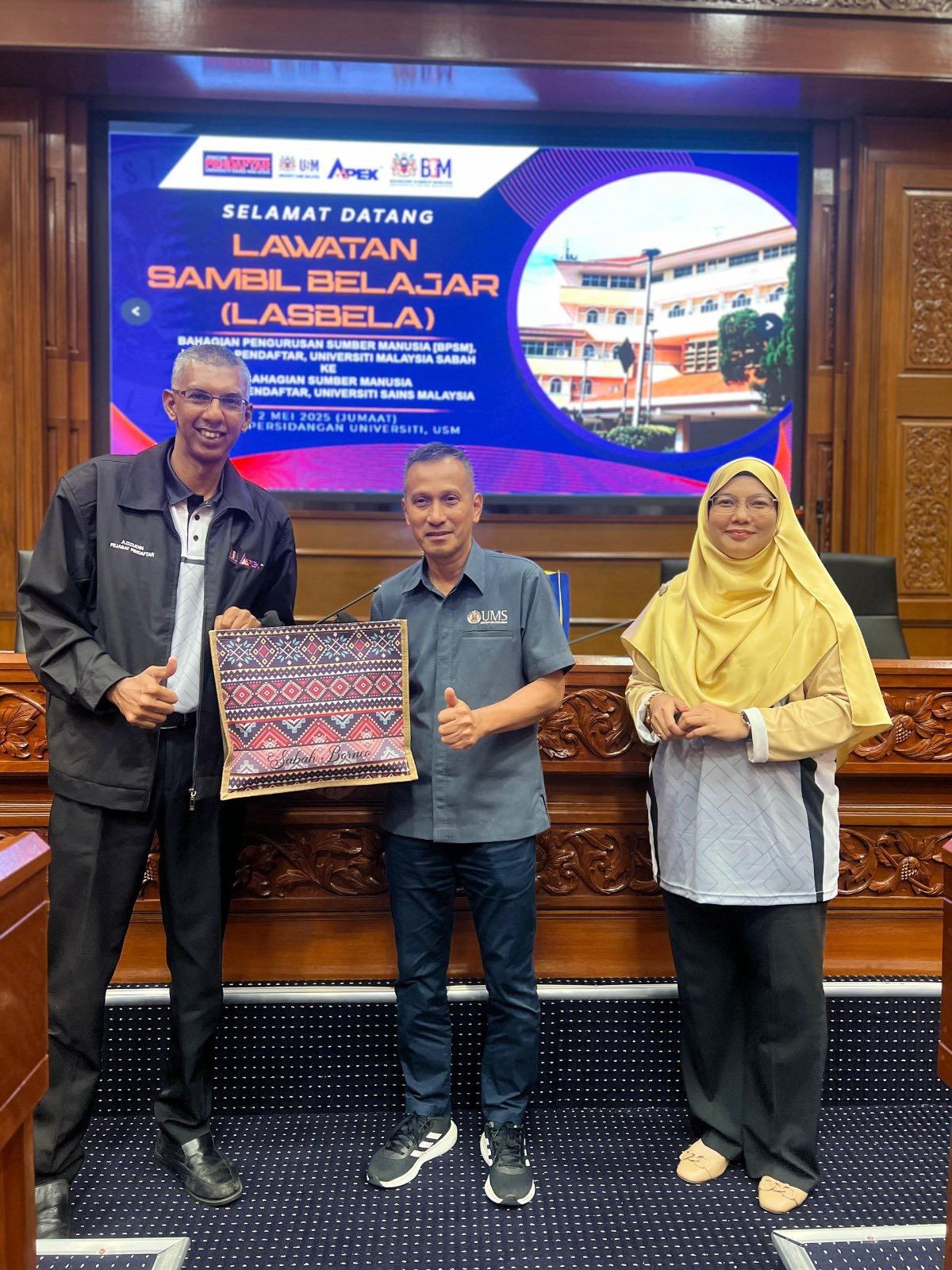 USM PULAU PINANG, 2 Mei 2025 – Bahagian Sumber Manusia, Jabatan Pendaftar hari ini menerima Lawatan Sambil Belajar (LASBELA) Bahagian Pengurusan Sumber Manusia (BPSM) Universiti Malaysia Sabah (UMS).