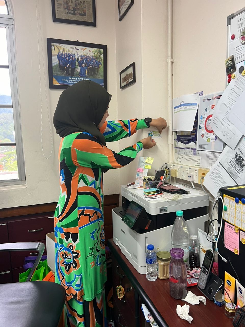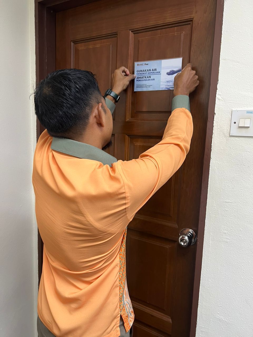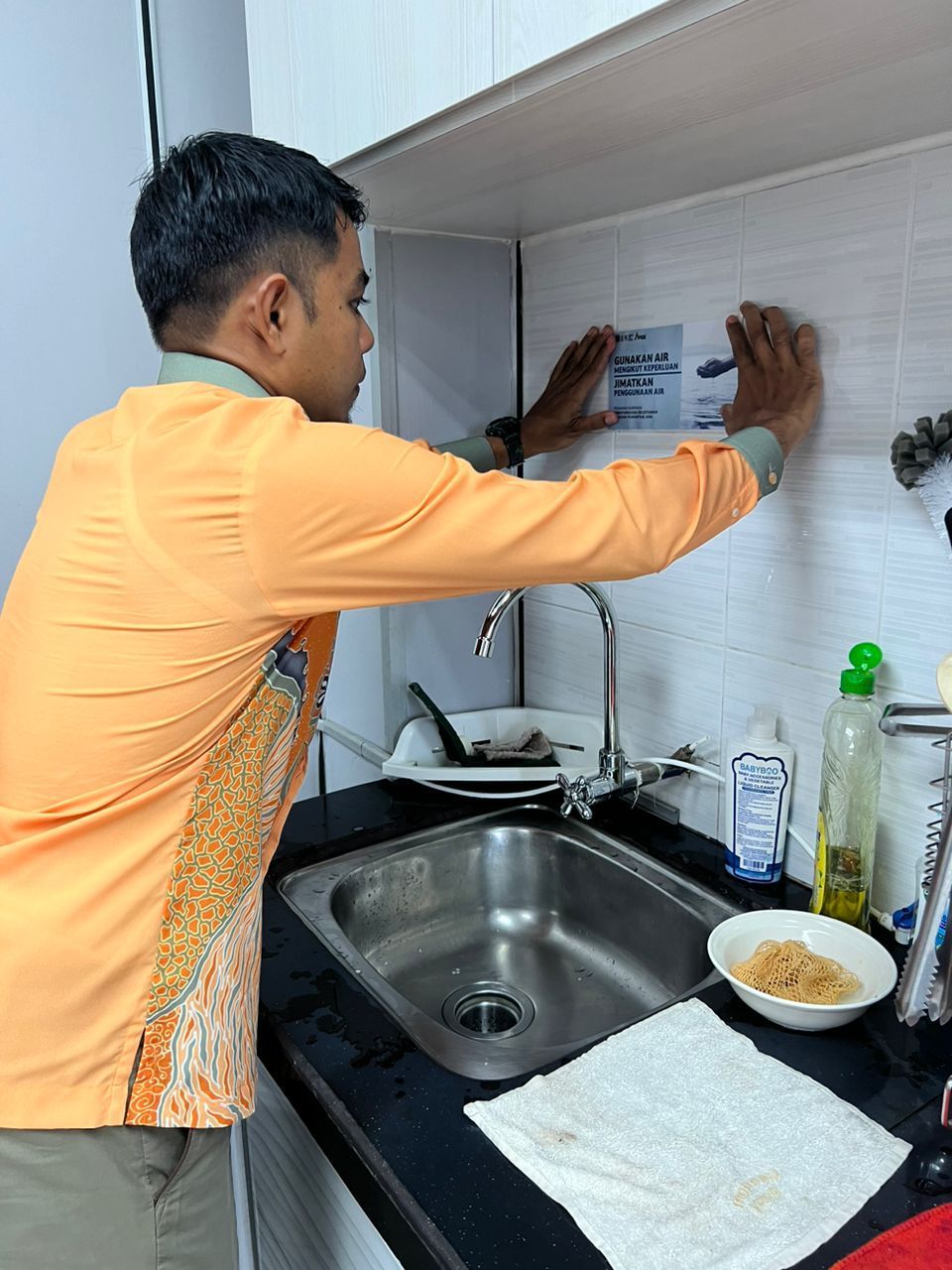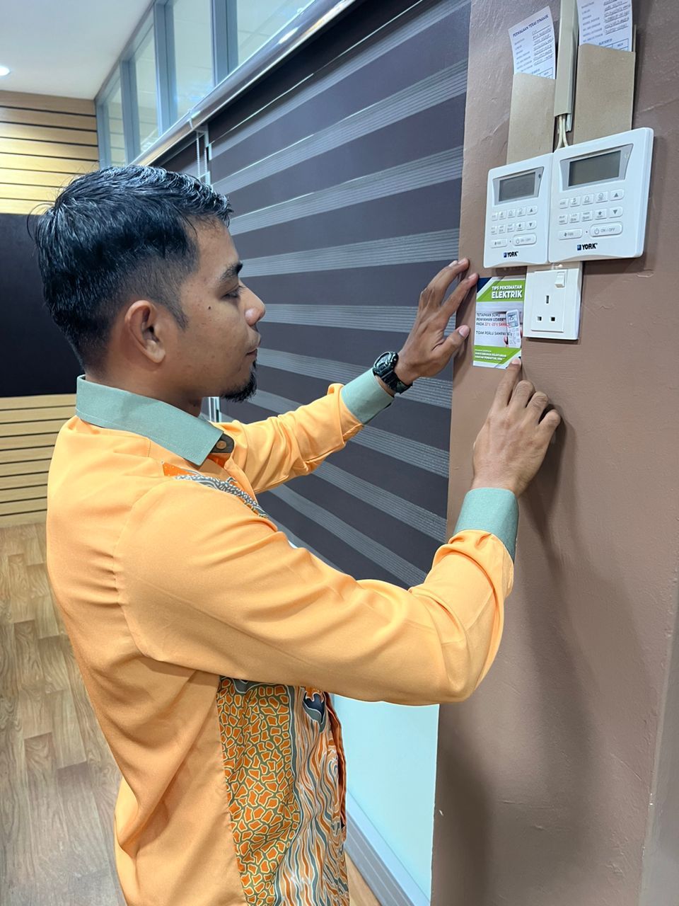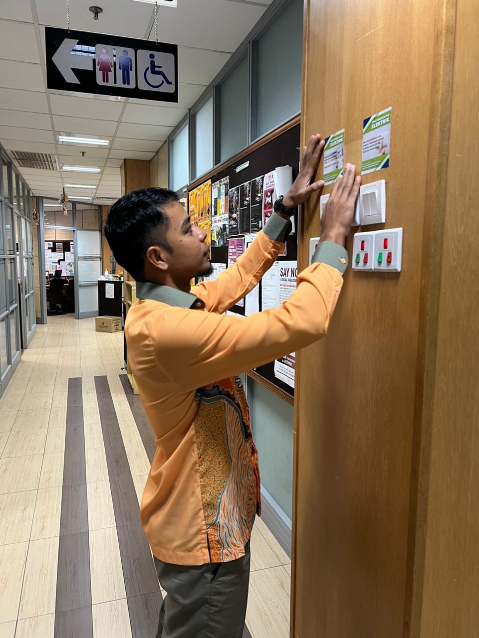 Program ini merangkumi penyediaan dan pemasangan stiker serta poster peringatan berkaitan langkah-langkah penjimatan elektrik seperti mematikan suis lampu dan penghawa dingin apabila tidak digunakan, serta menggalakkan penjimatan air terutamanya di ruang 'pantry' dan bilik air. Inisiatif ini dilaksanakan di pelbagai lokasi strategik bagi memastikan mesejnya sampai kepada semua staf dengan lebih berkesan.